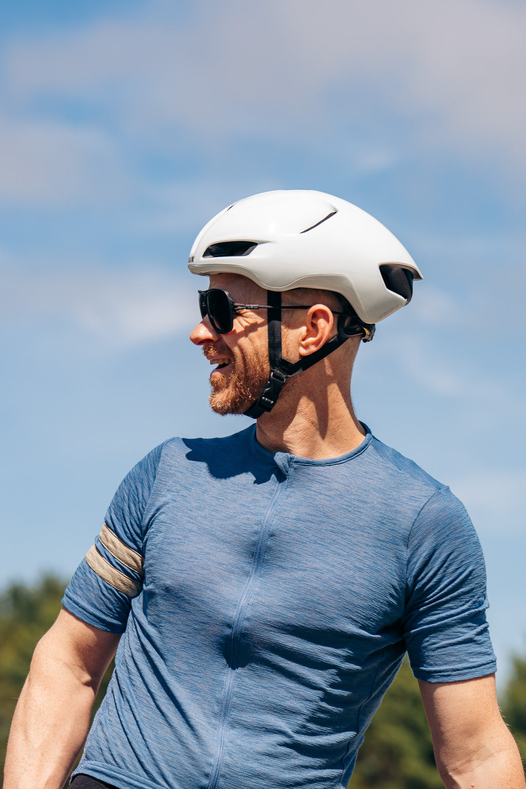 Our cycling jerseys are performance cut for a close-to-body fit and optimized for the riding position. The front hem is intentionally shorter to prevent bunching on the bike. If you prefer a more relaxed, t-shirt-like fit, we recommend sizing up. For best results, pair with cycling bibs or shorts that sit higher on the waist.