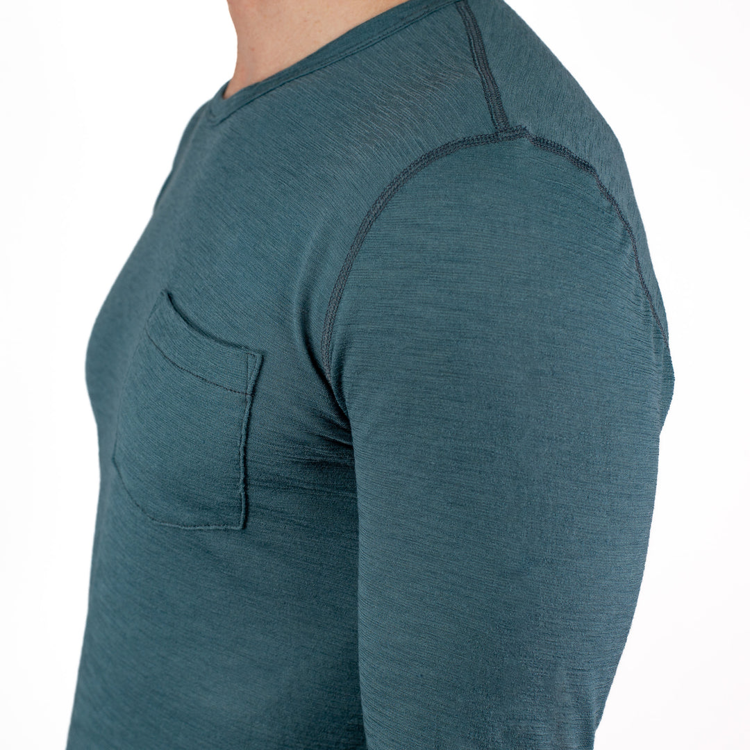 Summer Wool Long Sleeve Merino Wool Tee - Faded Blue