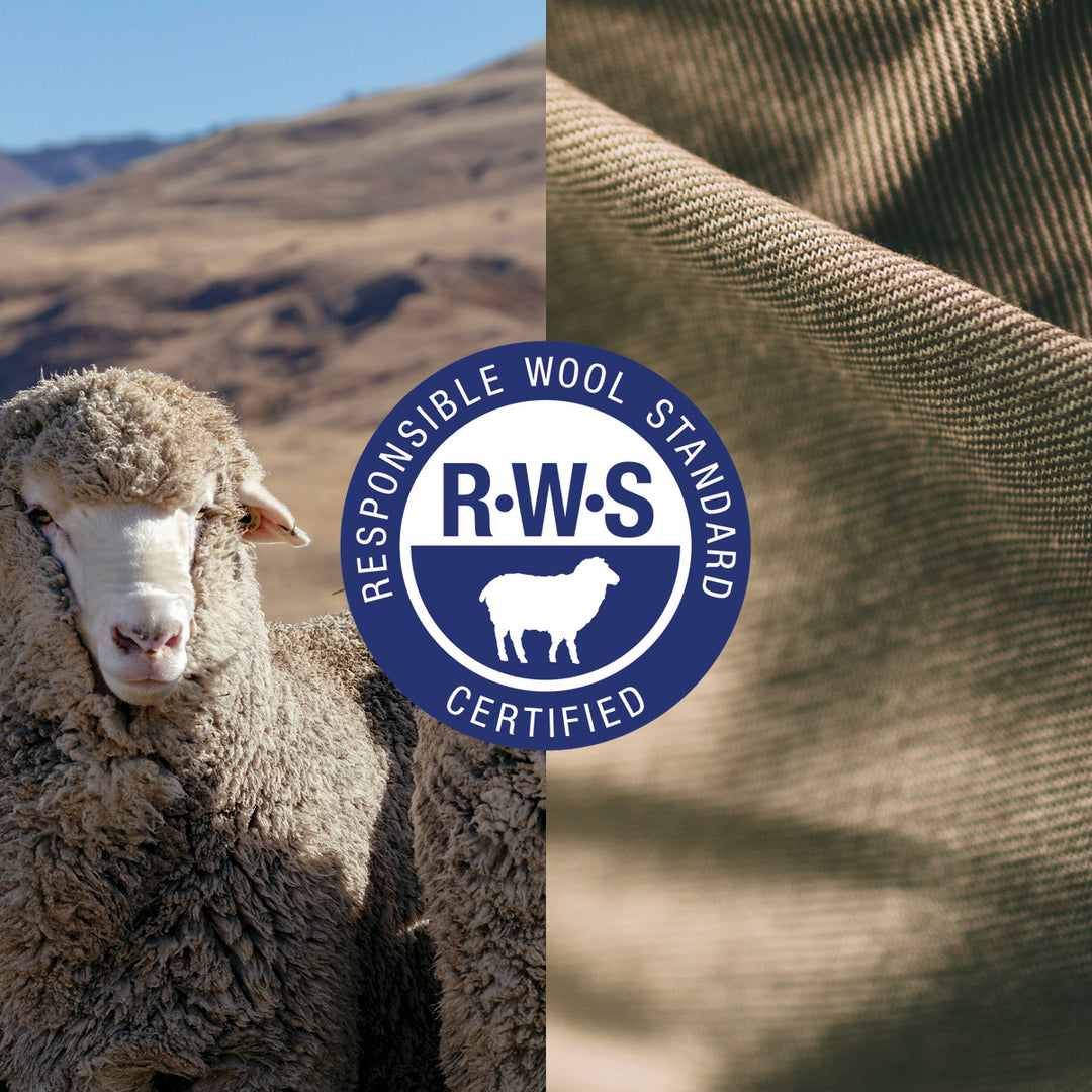 All our wool from farm to fabric is Responsible Wool Standard (RWS) certified.